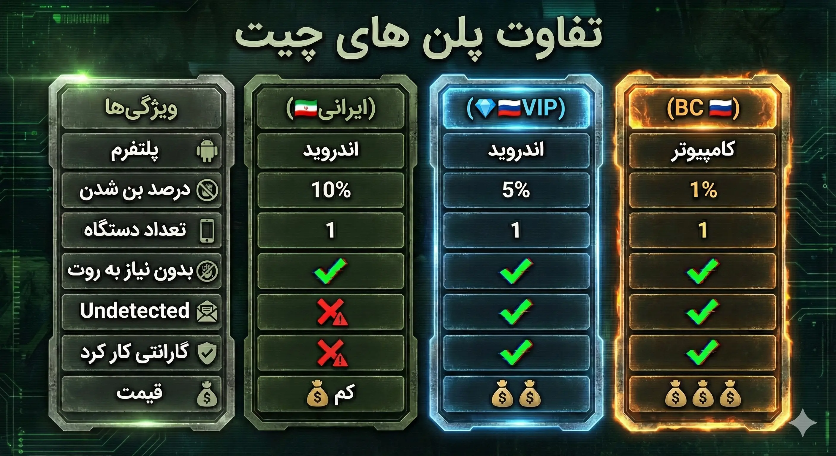 دیگه کافیه! ✋ چند بار توی یک مچ رنک، هدشات شدی و نوبها لوتت کردن؟ 😠 تا کی باید برای رسیدن به رنک لجندری عرق بریزی و استرس داشته باشی؟ امروز روزیه که تو قهرمان داستانت میشی. با خرید چیت کالاف موبایل، میتونی تبدیل به گادپلیر (God Player) سرور بشی و لابیها رو آتیش بزنی.